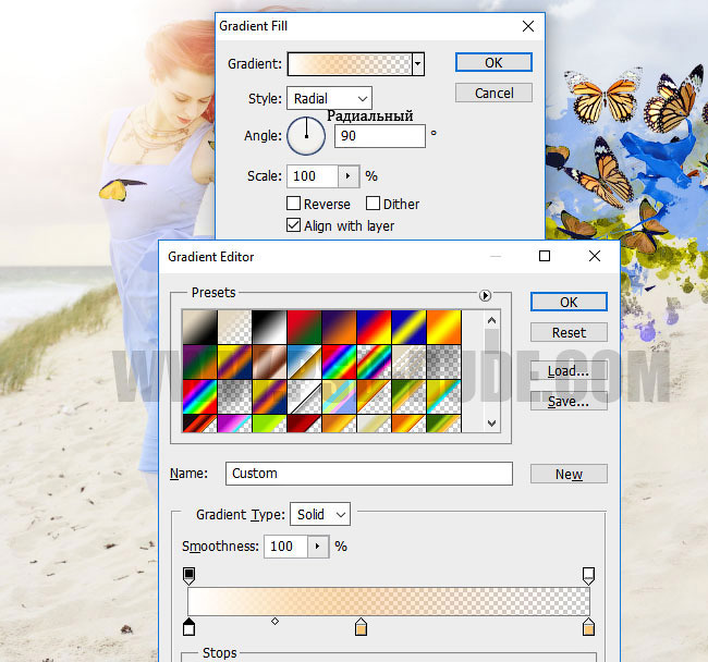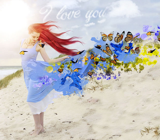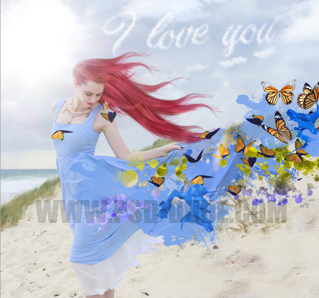 В этом уроке я покажу вам, как создать красивую картину с девушкой на пляже. Для создания романтической атмосферы, мы добавим красочные волны, бабочек и эффекты с солнечными бликами. Также мы используем экшен для создания текста из облаков.