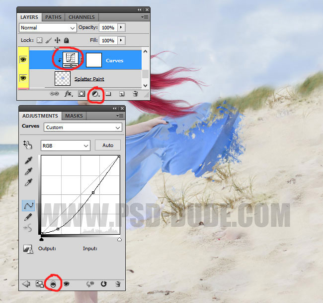 К слою Брызги (Splatter Paint), я добавил корректирующий слой Кривые (Curves) в качестве обтравочной маски для усиления цвета.