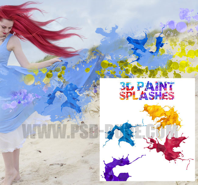 Если хотите, то вы можете добавить 3D брызги для усиления глубины. Чтобы применить указанные брызги, вам необходимо будет удалить белый задний фон на данном изображении. Также вы можете применить масштабирование, поворот, поменять цвет и т.д.