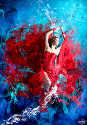 В этом видеоуроке Елена Минакова расскажет вам, как создать яркий портрет в стиле фотоарт с девушкой в красном наряде с эффектом рассеивающегося дыма. Елена поэтапно покажет, как создать дым из платья, а затем дорисовать его специальными кистями.