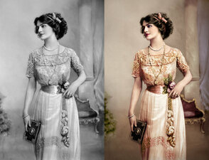 Запомните одно правило: лучше меньше да лучше, и если вы собираетесь воссоздать "доподлинный" вид, то подходите более прагматично к выбору цветовых оттенков, учитывая цвета, которые носили в то время, а также используйте низкую насыщенность, чтобы придать изображению вид 'старой' фотографии. Если же вы хотите проявить эксцентричность в выборе цвета, то забудьте то, что я вам сказал только что - просто берёте и делаете это!