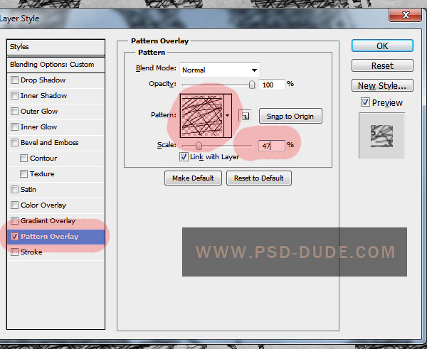 Проделайте то же самое со слоем Девушка 3 (Girl 3 Layer), только на этот раз, немного уменьшите масштаб узора, а также сместите узор, чтобы текстура карандашного штриха не выглядела однообразно.