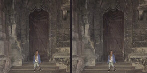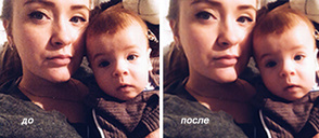 Исходное изображение (сверху) при увеличении, и конечное, с применением двух фильтров и уменьшения непрозрачности, изображения (снизу).