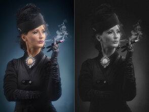После того, как освещение готово, пора снимать. Я предпочитаю фотографировать на темном фоне для получения неброского вида, который также был очень популярен в ранних портретных снимках Голливуда. Еще один важный момент - я фотографирую в цвете. На последующем этапе это позволит более точно подкорректировать черно-белые уровни.