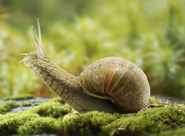 Откройте исходное изображение с улиткой. Отделите изображение улитки от заднего фона с помощью инструмента Волшебная палочка