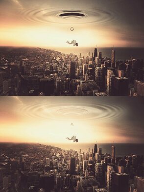 Самой тяжёлой частью данного урока будет совмещение упавшей капли воды с небом. Автор советует использовать фоновое изображение, на котором небо очень чистое, либо с разбросанными облаками для более реалистичного эффекта. Знание режимов наложения и умение применять их на практике, сэкономит вам значительное количество времени и предотвратит множество ошибок. Автор использовал режим наложения Multiply (Умножение) для капель воды, а также корректирующий слой Levels (Уровни) для осветления средних тонов.