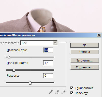 Подгоняем цвет с помощью функции Цвет/насыщенность: