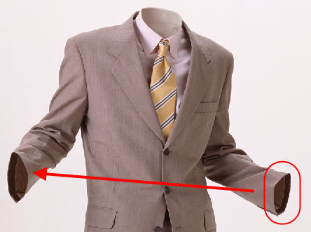 Так как человека в костюме нет, значит ясно должно быть видно внутреннюю сторону воротника с ярлычком.