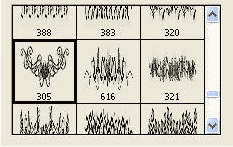 Создайте новый слой, установите кисти из дополнительных материалов, выберите кисть, как показано на скриншоте: