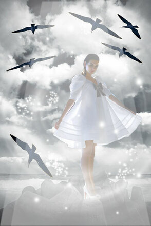 Для создания этого коллажа нам понадобятся следующие фотографии: небо, девушка и птица.