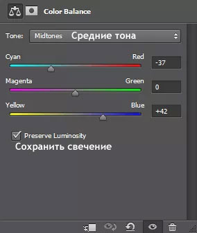 Создайте новый корректирующий слой Цветовой Баланс (Color Balance). Установите настройки, которые указаны на скриншоте ниже. С помощью данной коррекции, мы слегка объединим нашу сцену, усилив синие тона.
