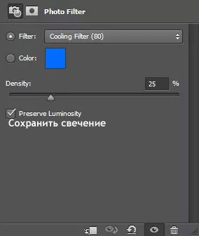 Для дальнейшего усиления атмосферы, создайте новый корректирующий слой Фото фильтр (Photo Filter). Примените фильтр “Cooling filter”.