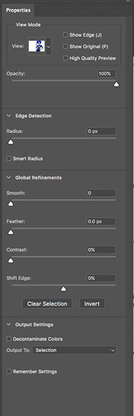 Примечание переводчика: модуль Выделение и маска доступна только для Photoshop CC и выше. Пользователи более старых версий могут воспользоваться инструментом Уточнить край (Refine Edge), кликнув по небольшой стрелке возле миниатюры в строке Вид (View).