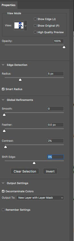 Используйте слайдеры блока Настройка края (Global Refinements), чтобы откорректировать выделение. В моем случае это не понадобилось, но обычно пункты Сместить край (Shift Edge) и Контрастность (Contrast) могут пригодиться, если нужен более четкий и реалистичный вид прически.