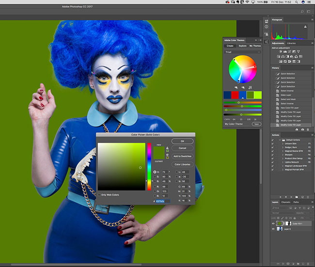 В этом уроке вы узнаете, как поменять фон, как выбрать правильный цвет контрастирующий с нарядом модели, а также как поменять цвета отдельных элементов для поддержания гармоничного сочетания.