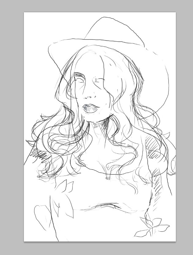 (Brush Tool) (B) размером 2 или 3 px и начните рисовать набросок девушки.