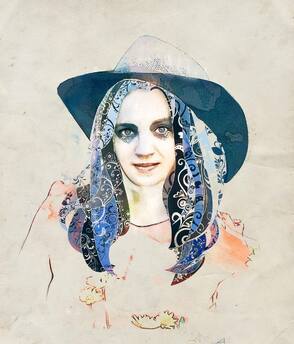 Слой «белый лист» скрывает фото. Чтобы открыть глаза модели, на панели Layers (Слои) выбрать слой «белый лист» → добавить к нему маску – кнопка внизу панели Add layer mask (Добавить слой маску) → выделить миниатюру маски слоя → в рабочем окне на изображении мягкой кистью черного цвета закрасить область глаз → в панели Layers (Слои) перейти на слой «радужка» → кистью подходящего размера и жесткости ярким синим цветом закрасить радужную оболочку глаз модели.8. Далее по уроку рисуются волосы, накладывается акварельная текстура, стирается с области лица.9. Придание цветовых оттенков мертвенно-бледному лицу – панель Layers (Слои) → выбрать слой с оригинальным цветным изображением → создать его дубликат Ctrl+J → команда меню Layer (Слои)