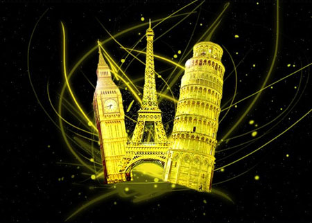 Для украшения нам понадобятся кисти, скачаем их здесь. Создаем новый слой и ставим его под слоем с башнями. Используйте эти кисти: