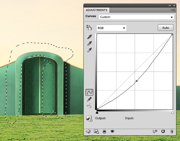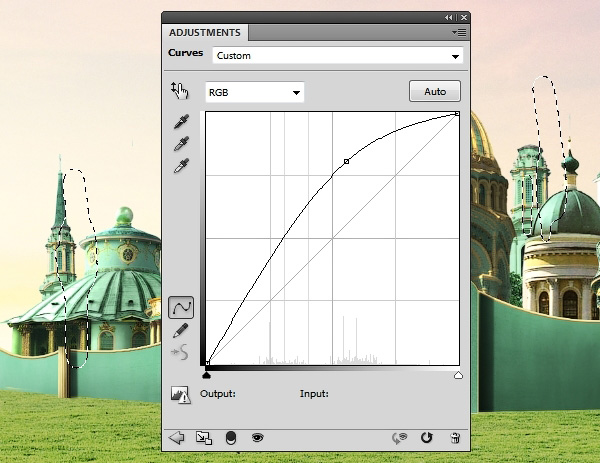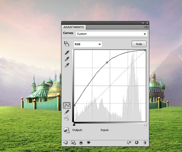 С помощью корректирующего слоя Curves (Кривые) увеличиваем яркость травы, чтобы она выглядела менее скучной.