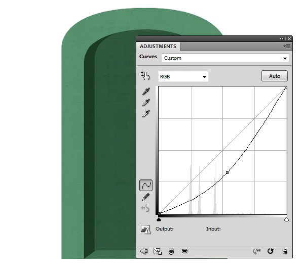 Используя корректирующий слой Curves (Кривые), затемняем копию фигуры, чтобы получить боковые грани арки. Называем слой «4».