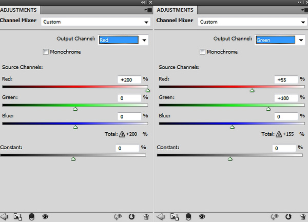 С помощью корректирующих слоев добавляем листьям яркости и красную тонировку.