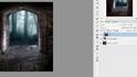 (Move (V)), переместите данное изображение с лесом на наш рабочий документ, расположив его поверх слоя Открытая дверь (Open Door). Теперь щёлкните правой кнопкой по слою с лесом в палитре слоёв и в появившемся окне выберите опцию Создать обтравочную маску (Create Clipping Mask).