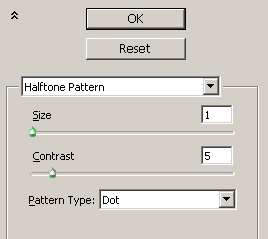 К полутоновому слою примените настройки Filter > Sketch > Halftone Pattern ( Фильтр> Эскиз> Полутоновый Узор)