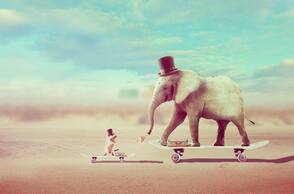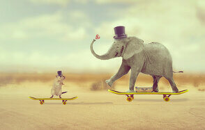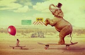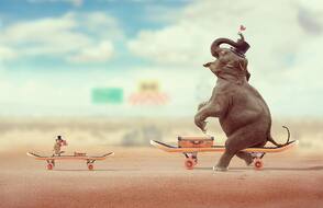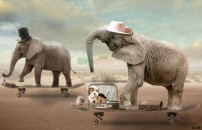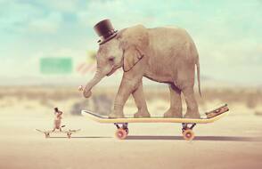 В этом уроке вы узнаете как создать забавную фотоманипуляцию с участием слона и мыши, которые катаются на скейтбордах.