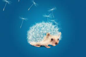 В этом сюрреалистическом уроке я покажу вам, как создать милого ёжика, у которого вместо иголок пушистый одуванчик.мы сделаем одуванчики. В качестве исходников нам понадобятся только 2 изображения. Я покажу вам, как грамотно применять кисти для лучшего смешивания и как прийти к финальному результату, используя несколько корректирующих слоёв.