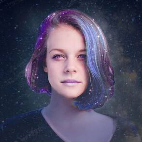 Далее мы будем добавлять космическую текстуру на волосах. Также, используя специальную кисть, мы нарисуем отдельные пряди волос.