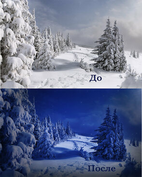 Этот несложный урок покажет новичкам, как с помощью Photoshop дневному зимнему пейзажу придать эффект Новогоднего волшебства.