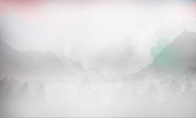 В нижней части панели слоев нажимаем на вторую кнопку слева, чтобы добавить маску на слой с пейзажем. Берем мягкую круглую кисточку (В) черного цвета и удаляем часть пейзажа, чтобы создать плавный переход к белому фото и получить эффект густого тумана.