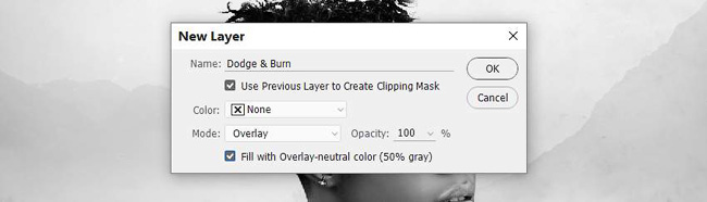 Создаем новый слой в режиме наложения Overlay (Перекрытие) с непрозрачностью 100% и заливаем его 50%-ым серым цветом. С помощью Burn Tool