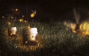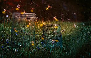 Теперь, когда наши банки установлены, мы можем начать добавлять светлячков. Имейте в виду, что это не настоящие светлячки. Я не смогла найти стоковое изображение летящих светлячков, поэтому мы просто создадим своих собственных.