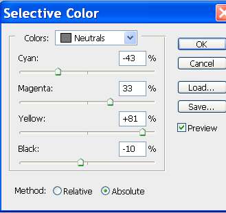 Сделаем цвета более интенсивными с помощью микширования каналов Image - Adjustments - Selective Color. (Изображение – Коррекция – Выборочная коррекция цвета).