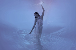 Поработайте с ластиком, чтобы получилось вот так. Т.е. сотрите размытие над изображением девушки.