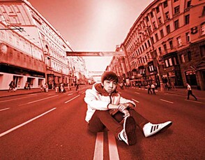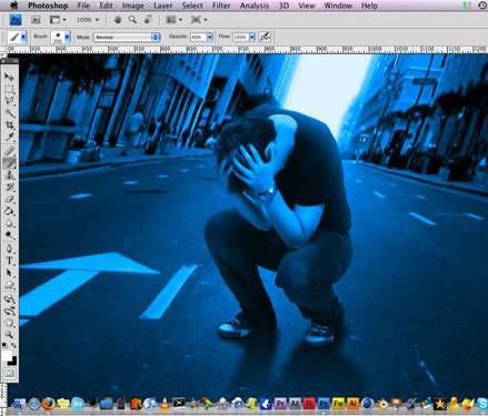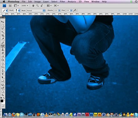 Шаг 7. Пора заняться парнем, будем вписывать его в общую картину. Для начала добавим тень.