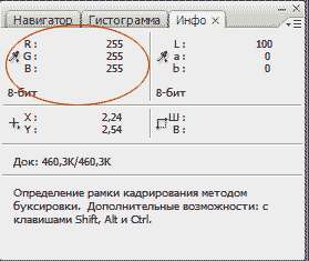Сверяемся с палитрой Инфо