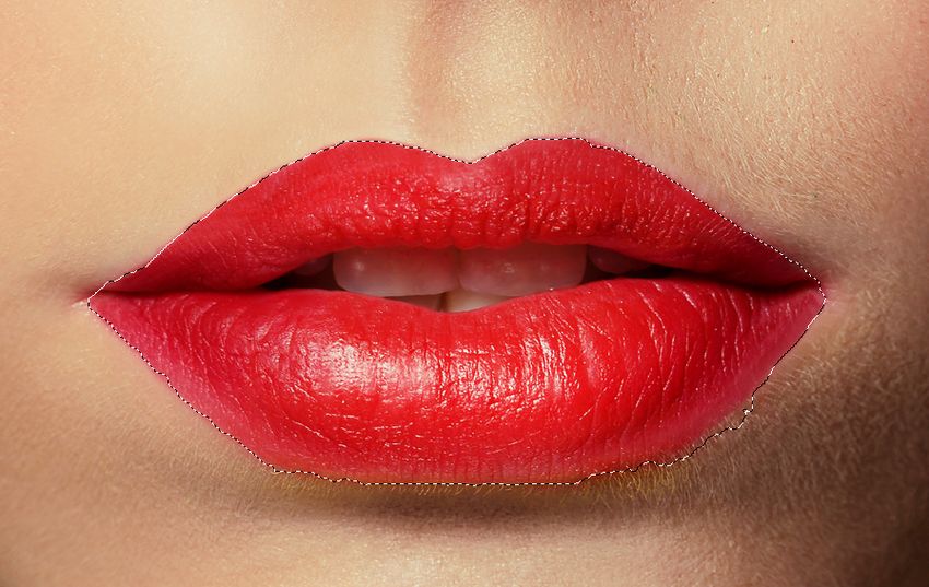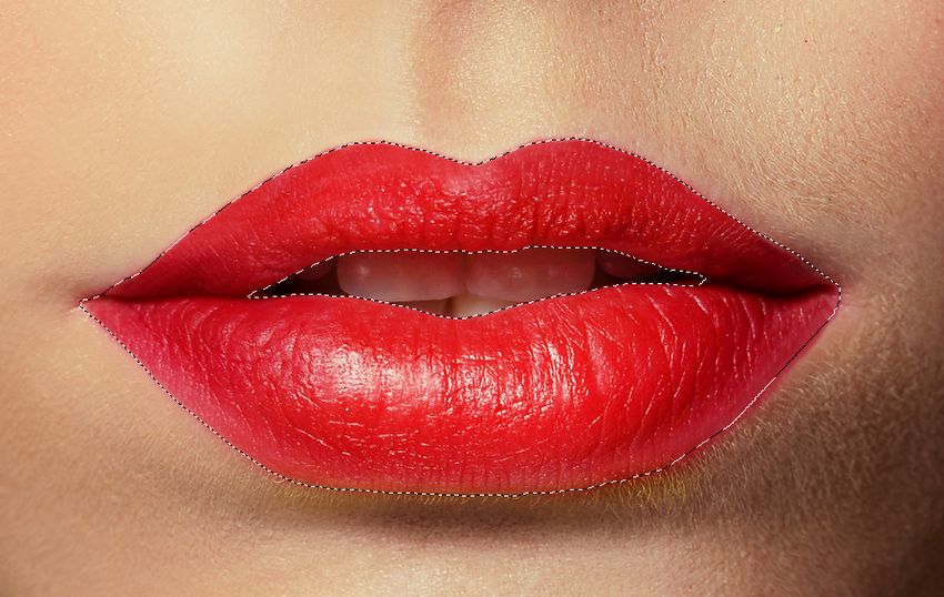 (Рамка). Выделяем губы и проверяем, чтобы в выделение не попал фон.