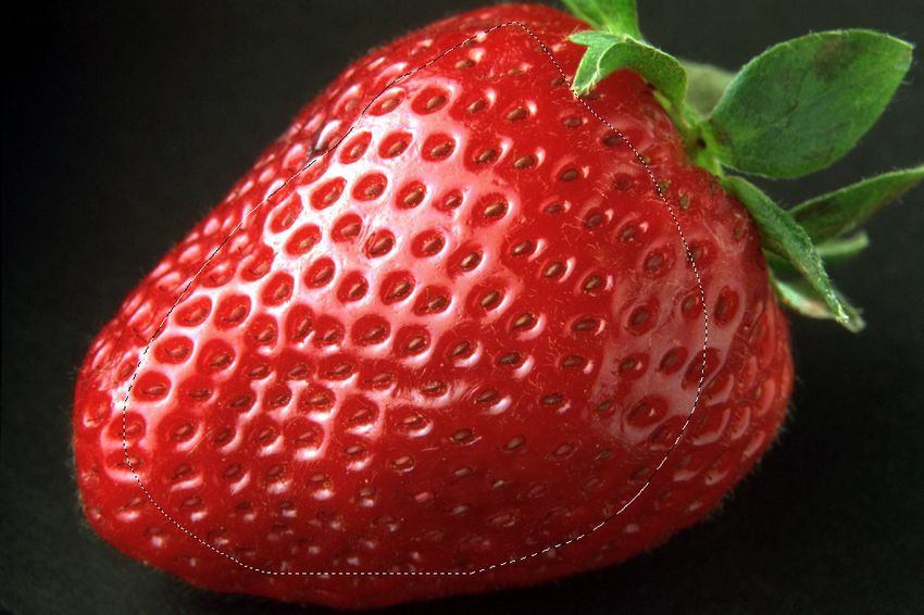 После кадрирования давайте немного подкорректируем цвет губ. Это нужно для того, чтобы они сочетались с цветом клубники. Активируем инструмент Quick Selection Tool