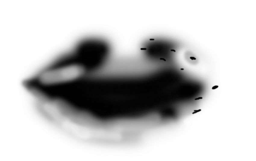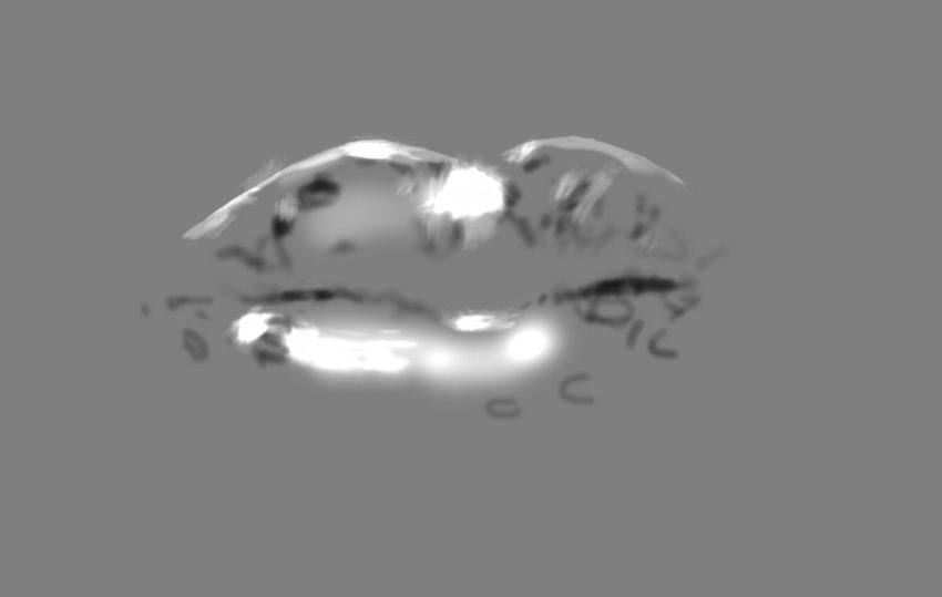 (В) средней жесткости и аккуратно удаляем текстуру на верхней губе и в правом углу нижней губы. Для верхней губы мы добавим отдельную текстуру, так как текущая выглядит не очень хорошо и не подходит по освещению. Для проработки контуров уменьшаем непрозрачность кисти и аккуратно проводим, чтобы получился естественный переход от текстуры к губе.