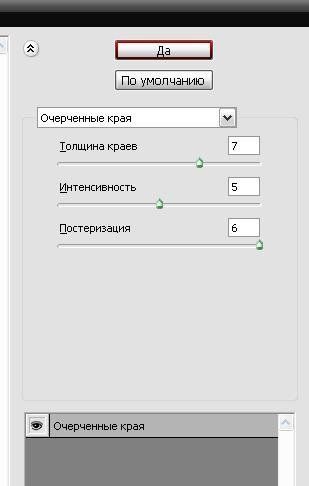 Следующее действие Filter – Artistic – Poster Ages (Фильтр — Имитация — Очерченные края). С помощью этого фильтра проявятся основные черты портрета. Настройки вы можете либо использовать мои, либо поэкспериментировать.