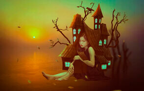 В этом уроке я покажу вам, как создать сюрреалистичный коллаж с девушкой и деревянным домом на плечах. В начале мы создадим фон и добавим на него модель. Позже вставим дом и сухие ветки. После этого украсим работу мелкими деталями: воронами и падающими листьями. В конце применим несколько корректирующих слоев.