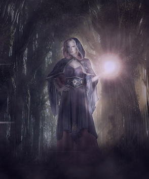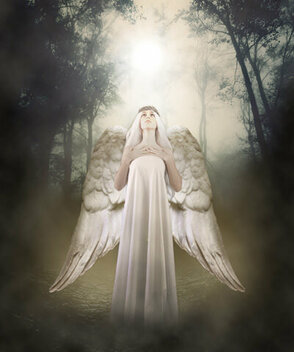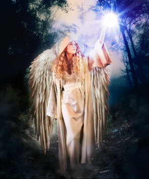Импортируйте второе изображение “Female” , измените размер и расположите в центре изображения как ниже. Измените название слоя на angel.