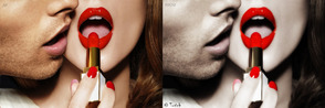 (Инструмент Ластик) и жесткой круглой кистью около 10 пикселей очистим чёрно-белый слой, чтобы показать красный цвет.