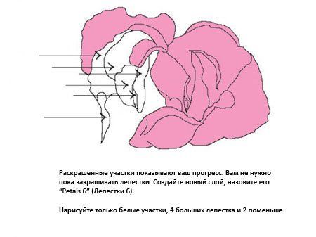 Шаг 5. Продолжаем рисовать лепестки. Новые лепестки показаны линиями.