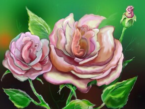 Достаточно просто подошли к рисованию этой розы, мне не понравился такой подход. Я хотел нарисовать ее сам, с помощью планшета и кисти, а не с помощью размалеванного цвета пальцем.