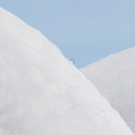 выбираем цвет фона рядом (снег или небо), и широкой мягкой кистью, с непрозрачностью (Opacity) и интенсивностью (Strength) около 20%, проводим поверх нужного элемента. Бывает, что объект вписан в окружение хорошо, но слишком контрастирует с фоном краями. Тогда таким же образом проводим кистью (цвета фона) по его контуру.