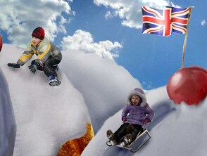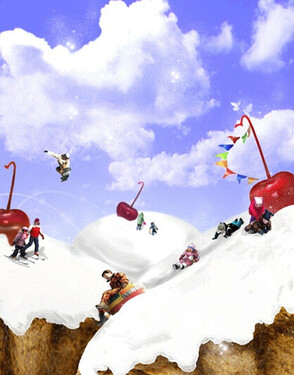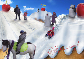 Поступаем аналогично с остальными горками, а затем корректируем цветовой баланс (Ctrl+B) и яркость (Изображение>Регулировки>Яркость/Контрастность / Image>Adjustments> Brightness/Contrast) таким образом, чтобы снег на всех планах имел одинаковый тон.