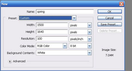 Шаг 1. Создаем новый документ размером 1500х1640px, разрешением 100dpi с белым фоном.